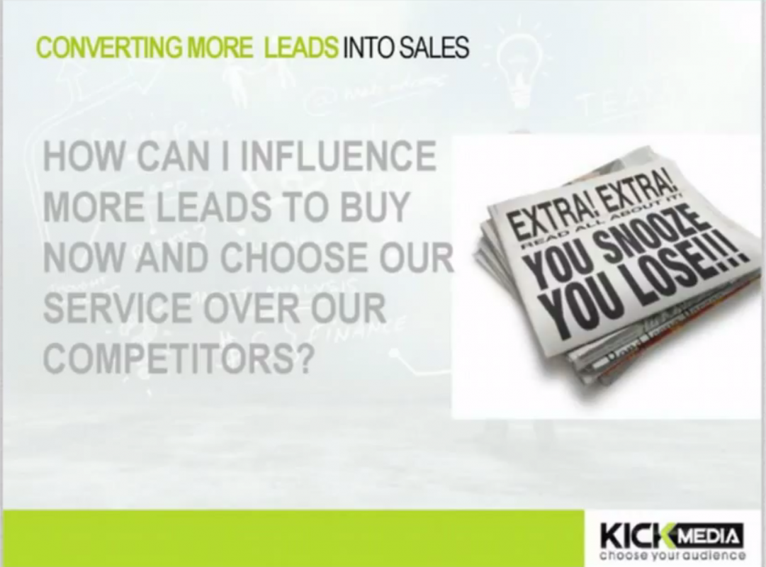 Finally we will revisit the topic of powerful offers and how and where they can be used to ensure your leads convert into sales now and not later. Create more influence through a range of techniques we will outline in this webinar and get more leads taking action now.