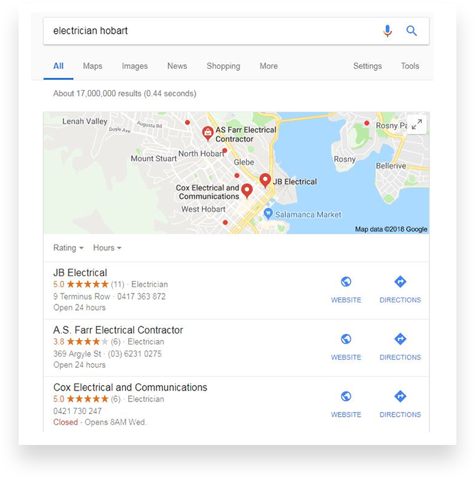 First is to organically appear for location keywords in the organic listings.Example: SEO Hobart or if you’re not an SEO agency like us, Carpet Cleaners Hobart.When a person types a search query into Google with a location keyword, the search intent to buy now is amplified.What other reason would a person have to type the service or product name into Google with a location keyword, other than the fact they are ready to take action now.Keywords that include a location are amongst the highest converting keywords that exist especially for service based businesses.